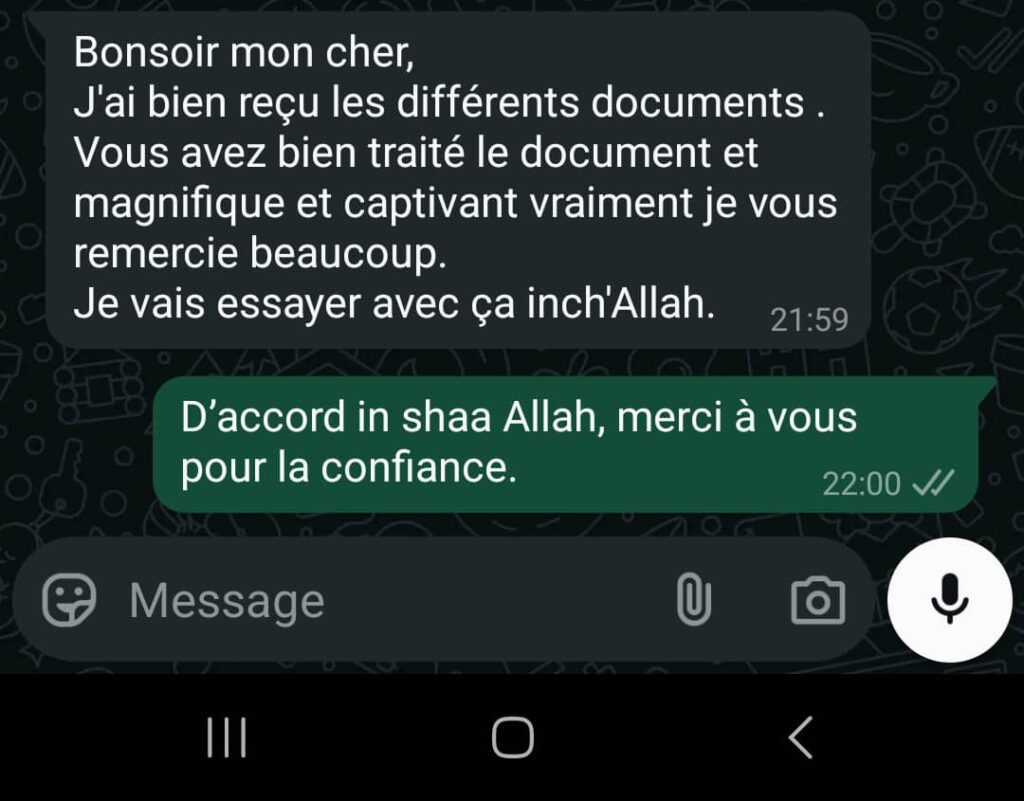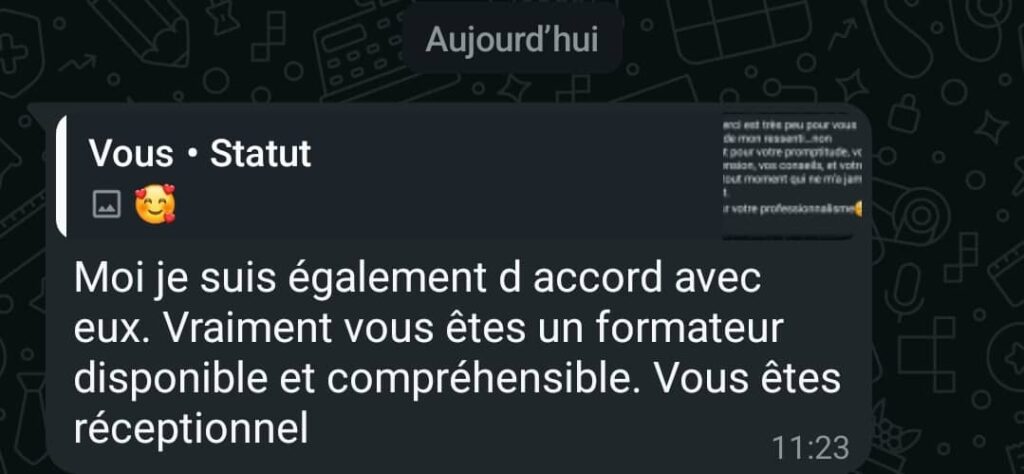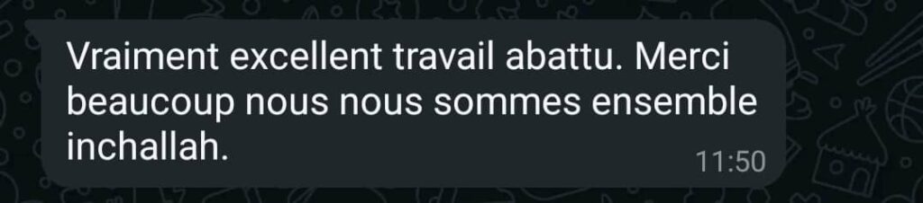 Pour rejoindre le groupe WhatsApp du site, cliquez sur ce lien : Lien du groupe WhatsApp